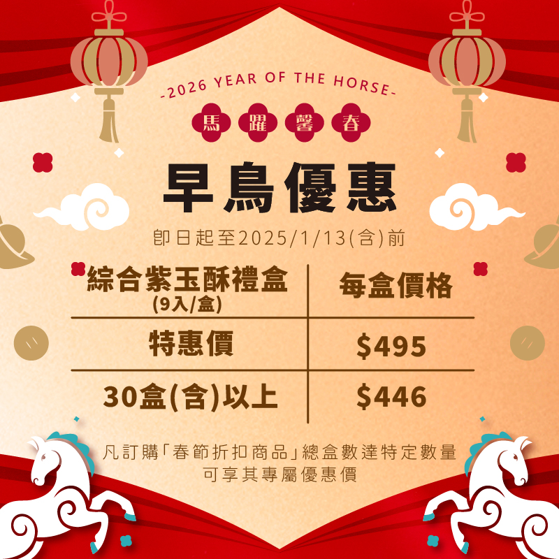 ⚠️2026/1/26-2/10為物流貨量高峰期(春節送禮),請將預訂送達日提前 2–3 天,以避免影響送禮時程。