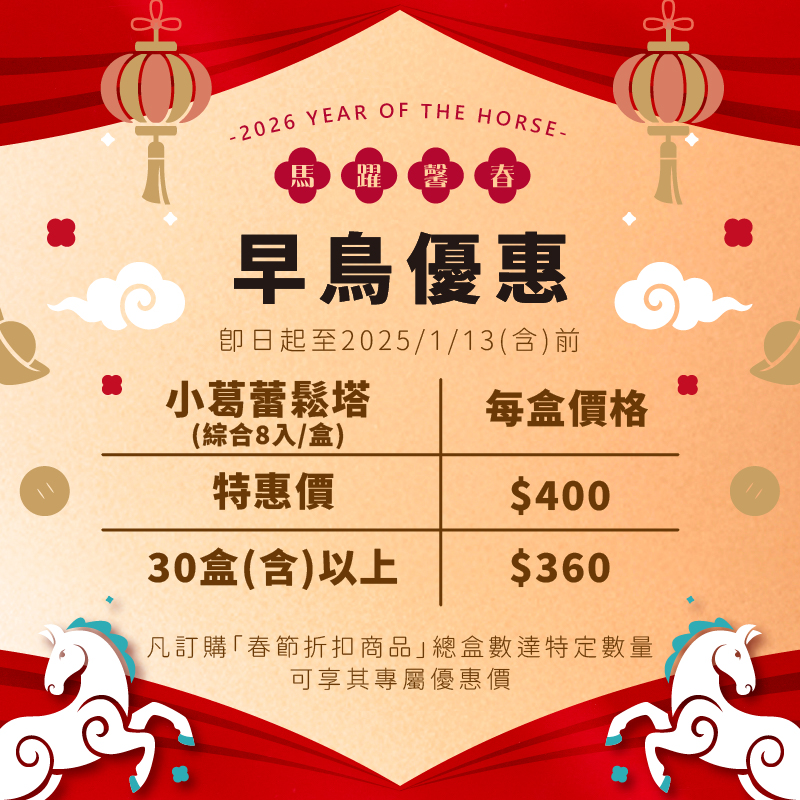 ⚠️2026/1/26-2/10為物流貨量高峰期(春節送禮),請將預訂送達日提前 2–3 天,以避免影響送禮時程。